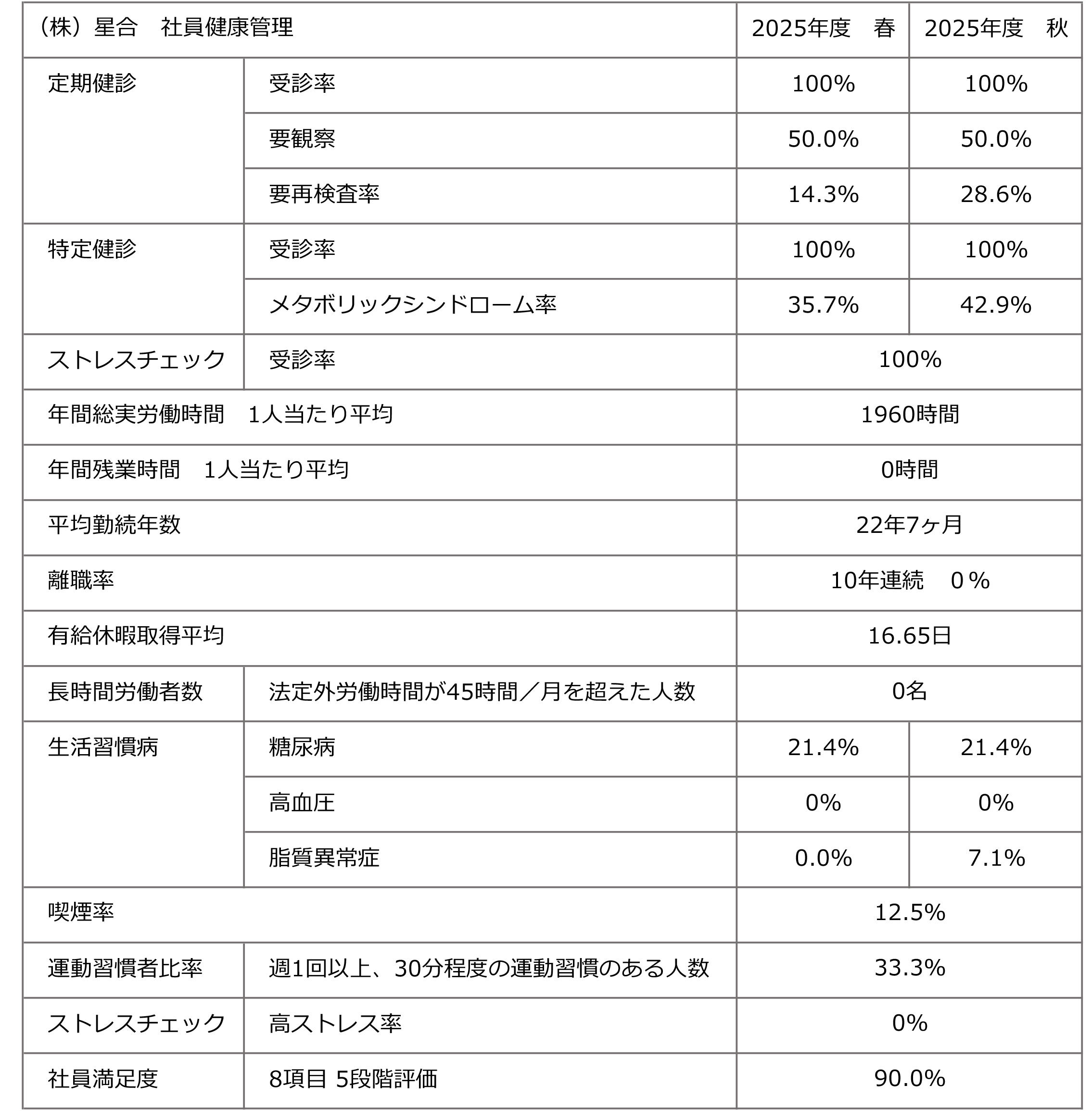 また、健康診断2025(秋)の結果を公開することで、全役社員の意識向上につながる。実際にここ5年で意識改革に成功しております。